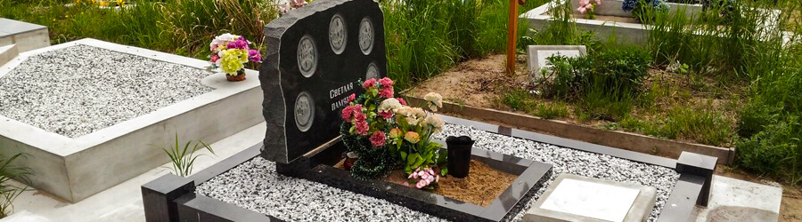 Памятник с гранитным или мраморным цветником, в зависимости от вида захоронения. Одиночные могилы обычно оформляются одним цветником. Он может иметь любую форму и размер. Для семейных захоронений предлагаются различные варианты оформления: